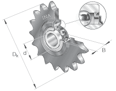 - 鏈傳動(dòng)惰輪輪齒單元作為組合型號的例子 KSR15-B0-06-10-20-08 KSR 鏈傳動(dòng)惰輪輪齒單元 15 軸承內(nèi)徑 B0 帶偏心套的外球面球軸承, 系列 RAE..-NPP 06 惰輪節(jié)圓 1/16