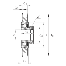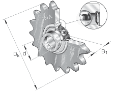 - 鏈傳動惰輪輪齒單元作為組合型號的例子 KSR15-B0-06-10-20-08 KSR 鏈傳動惰輪輪齒單元 15 軸承內徑 B0 帶偏心套的外球面球軸承, 系列 RAE..-NPP 06 惰輪節圓 1/16