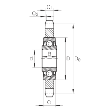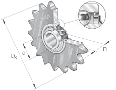 - 鏈傳動惰輪輪齒單元作為組合型號的例子 KSR15-B0-06-10-20-08 KSR 鏈傳動惰輪輪齒單元 15 軸承內徑 B0 帶偏心套的外球面球軸承, 系列 RAE..-NPP 06 惰輪節圓 1/16