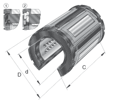 - 基本額定載荷僅適用于淬硬(670+170 HV)及磨削過的作為滾道的軸 基本額定載荷根據 ISO/CD 14 728-1 (最小值)