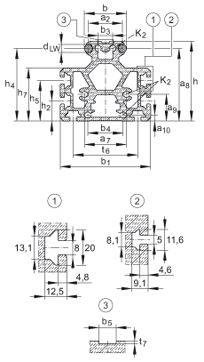 - 根據(jù) DIN 931 (DIN EN ISO 4014)的螺栓,需要用于導(dǎo)軌的特殊支撐墊圈,符合 DIN 933-8.8 (DIN EN ISO 4017) LFS..-N 及 LFS52-NZZ 包括在供貨中。
